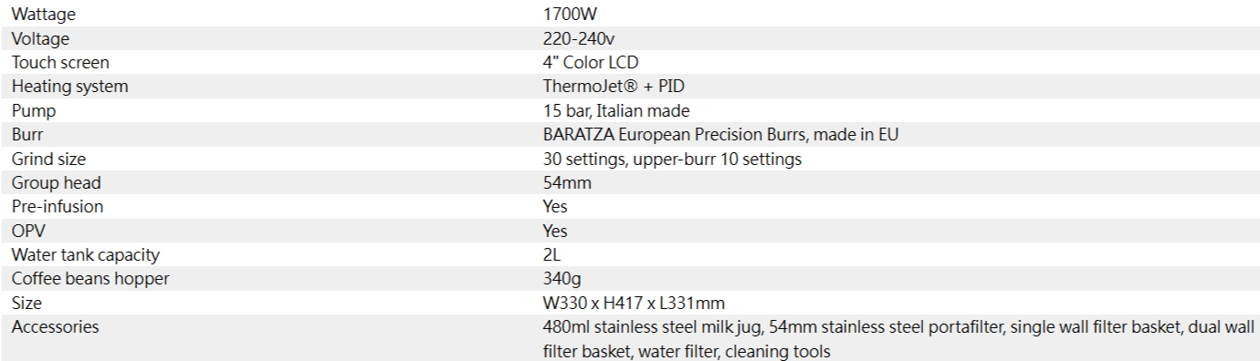 • BARATZA® European Precision Burrs with 30 grind settings