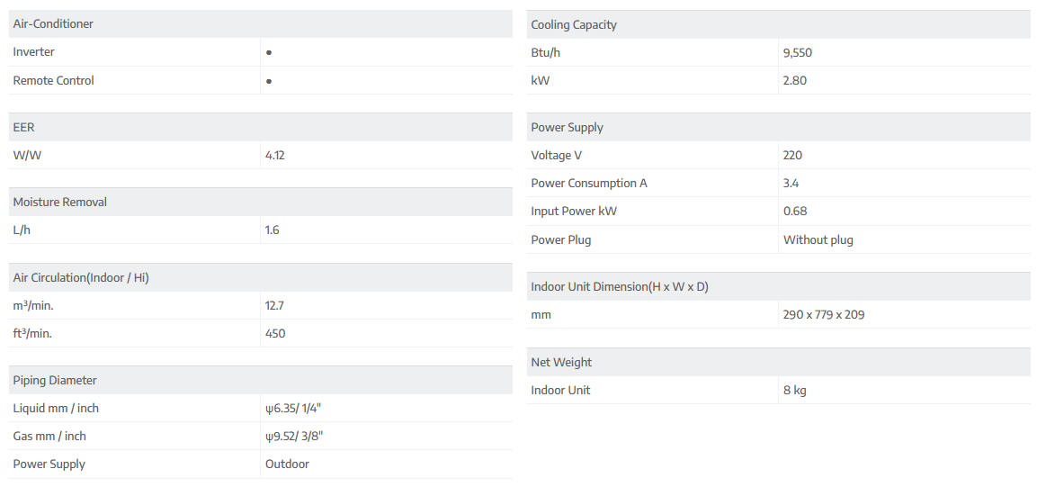 • Height of outdoor unit is 420mm, suitable for installation in most of Hong Kong's Air-conditioner hood