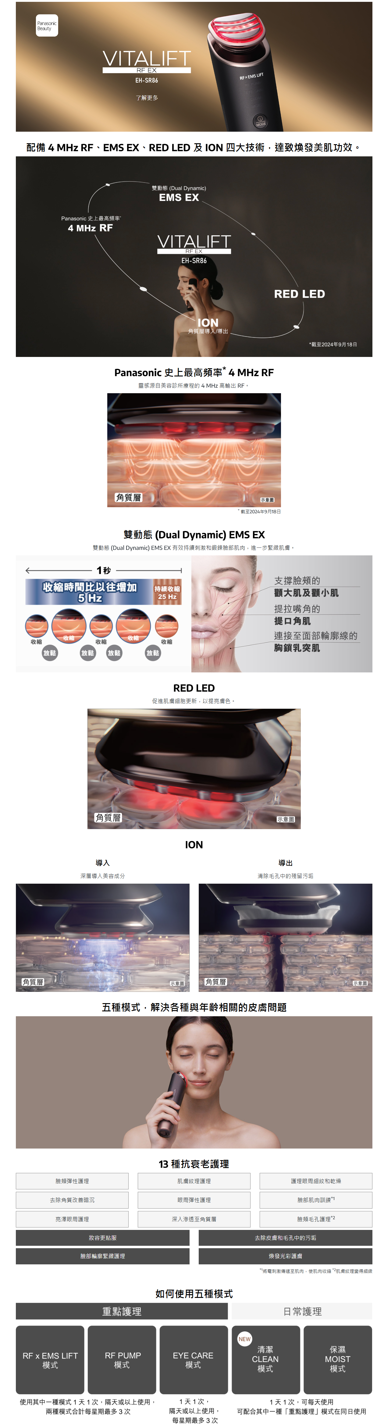 5 種模式, 達致13 種抗衰老*2 功效, 滿足各種深層護理需求