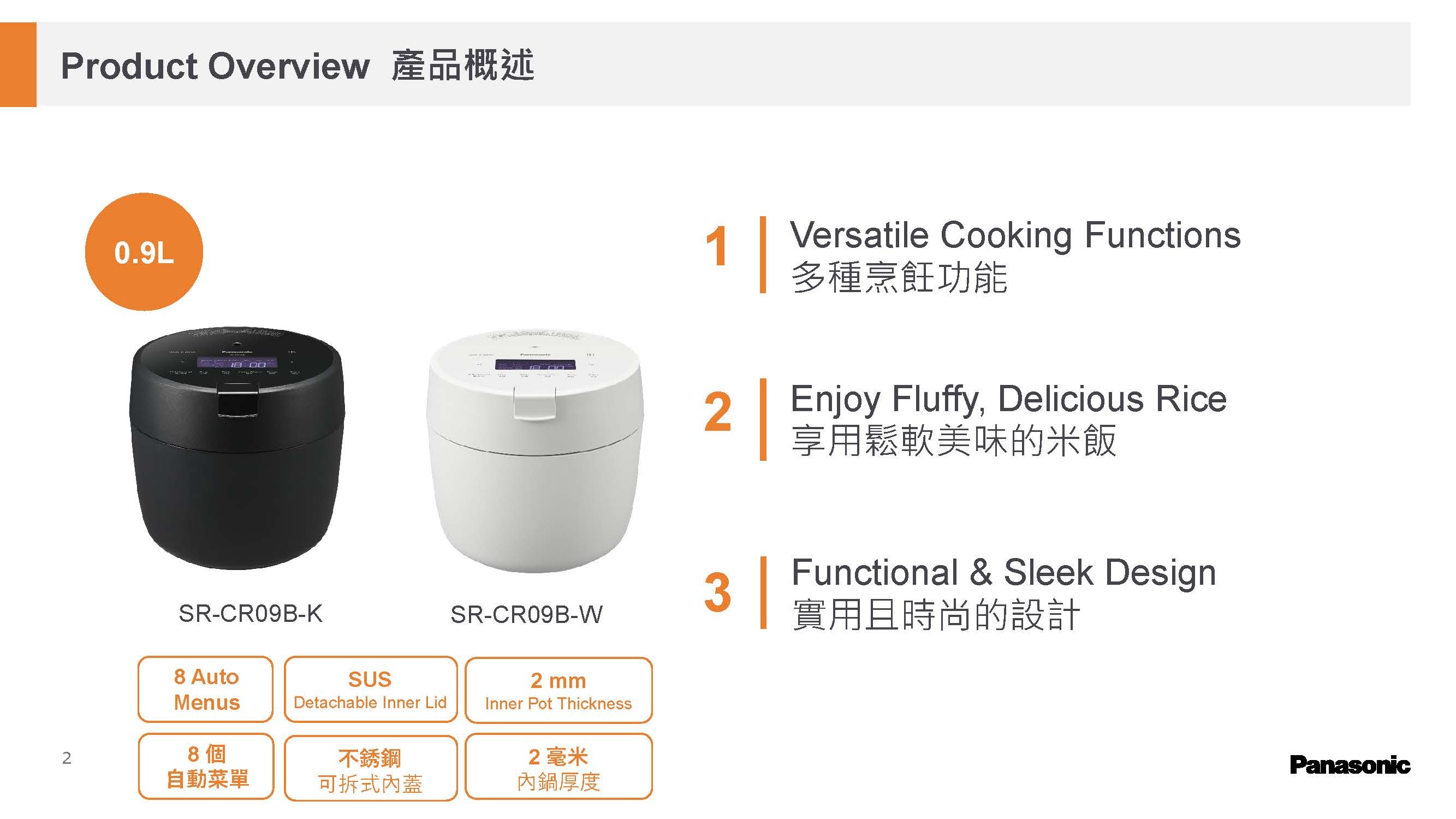 Panasonic SR-CR09B IH磁應黑鑽西施電飯煲擁有0.9L容量,日式極簡設計適合任何廚房空間。