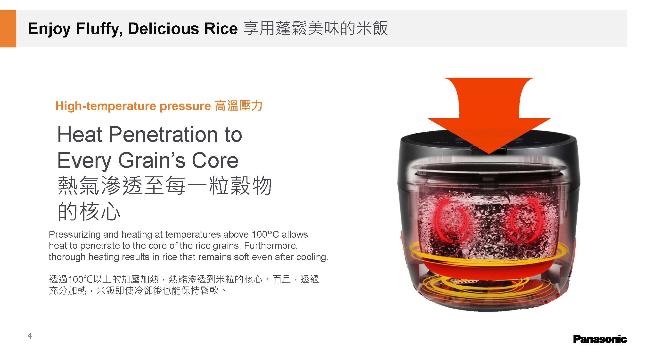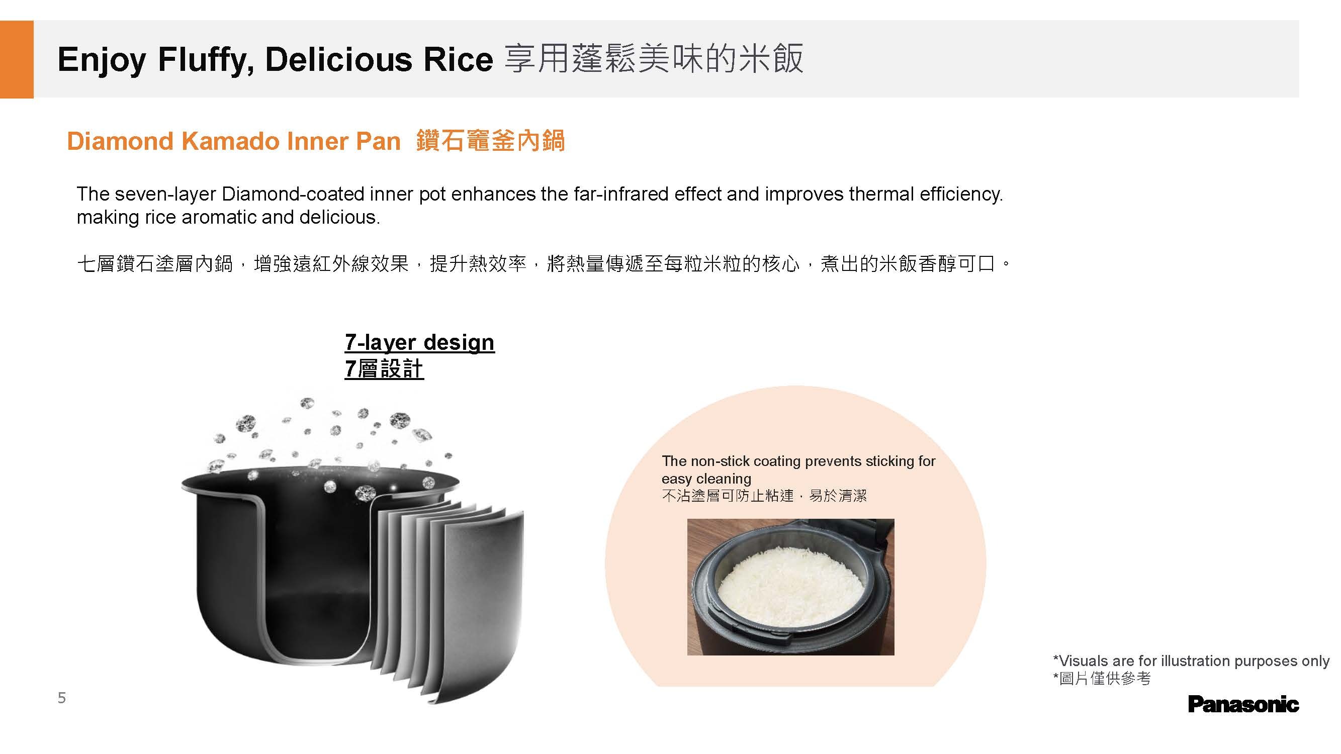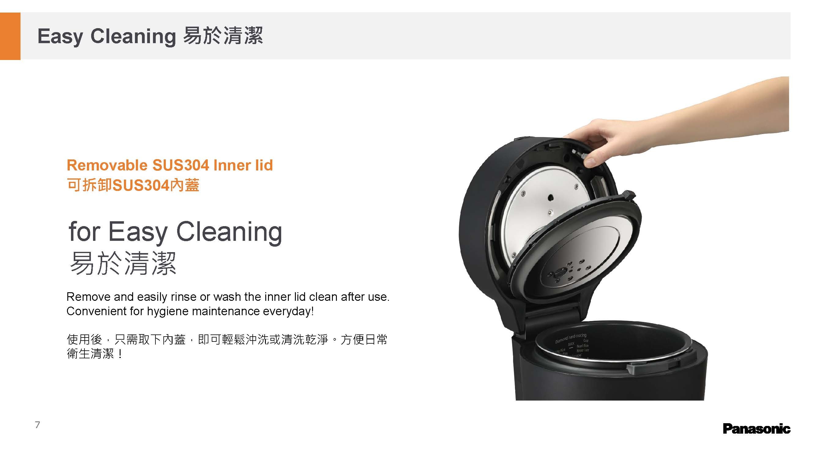 其七層鑽石塗層內鍋透過高溫壓力烹飪,確保米飯鬆軟美味,而可拆卸SUS304不銹鋼內蓋讓清潔輕鬆簡單。