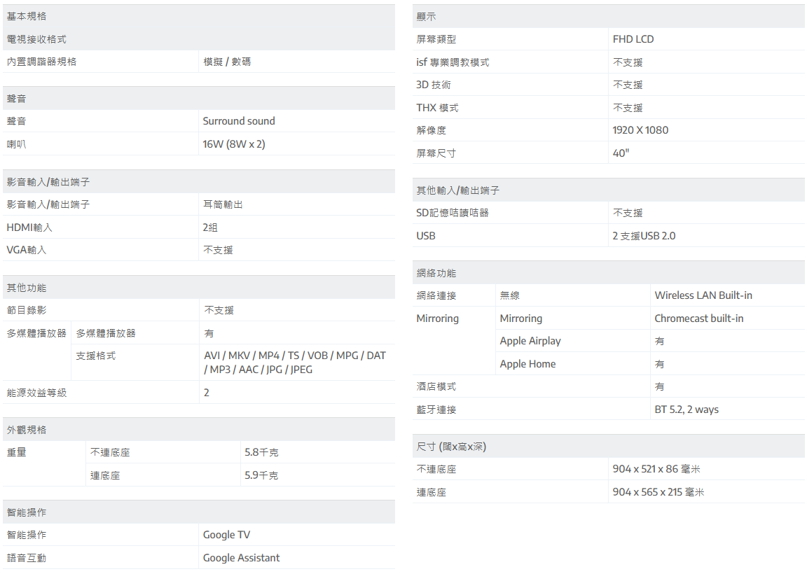 • 智能電視-Google TV, 內置 Google Assistant*1, Chromecast
